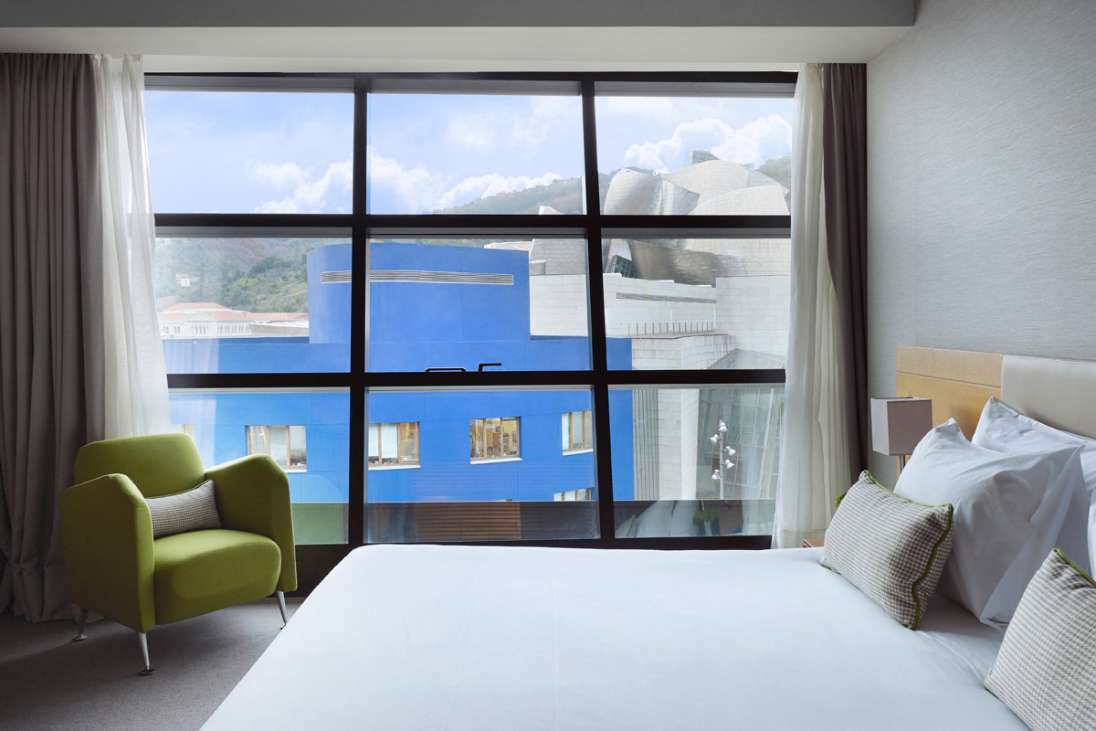 Con sus 145 habitaciones y suites climatizadas, algunas de ellas con vistas al Museo, sus clientes pueden disfrutar de una relajada estancia en el corazón de Bilbao. Sus modernas habitaciones disponen de baños completos con ducha y bañera, zapatillas, albornoces, WIFI gratuito, y Smart TV con los principales canales internacionales, además de conexiones USB y HDMI. Sus exclusivos servicios incluyen un Wellness Center y una variada oferta culinaria en su restaurante Le Café, con menú del día y servicio a la carta; en el elegante Bar 61 dónde se sirven los mejores cócteles y champagne, o en su espectacular Terraza Rooftop. Todo ello abierto a clientes no alojados.